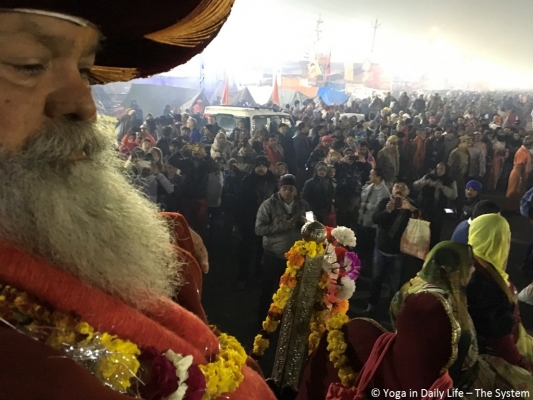 विश्वगुरू जी महामण्डलेश्वर परमहंस श्री स्वामी महेशवरानन्द जी द्वारा प्रयागराज कुम्भ मेले मे मौनी अमावस्या पर पुनः शाही स्नान किया गया .